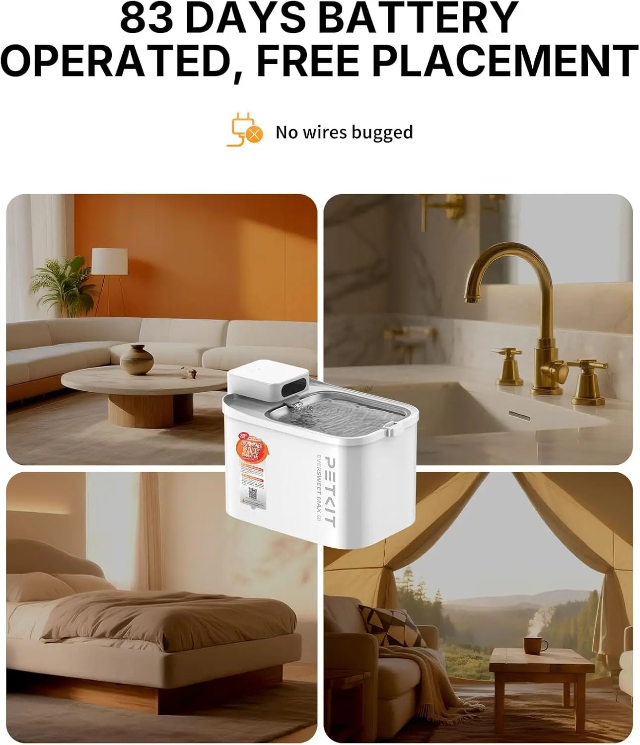 Cordless Cat Water Fountain with Motion Sensor, 3L Stainless Steel Tray, App Control for Pets